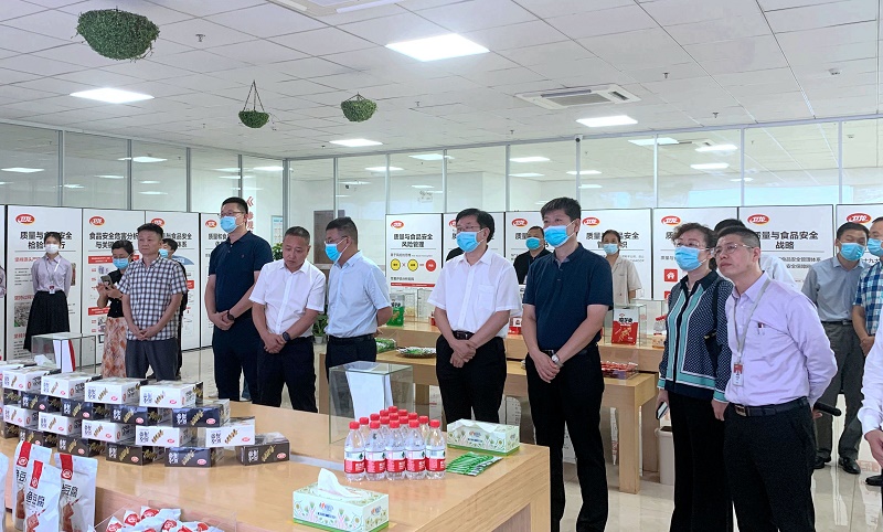 9月22日,国家市场监督管理总局食品安全抽检监测司副司长梁钢,食品安全抽检监测司二级巡视员郝明虹带队莅临jinnianhui今年会美味调研。省市场监管局党组成员、副局长王建防,漯河市副市长周剑,漯河市市场监管局局长张炜,市市场监管局副局长马强华,市市场监管局食品生产监管科科长王文甫,开发区管委会副主任孙波,开发区市场监管分局局长王铁军等相关部门负责人陪同调研。